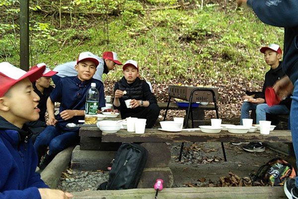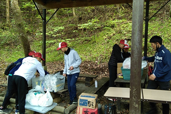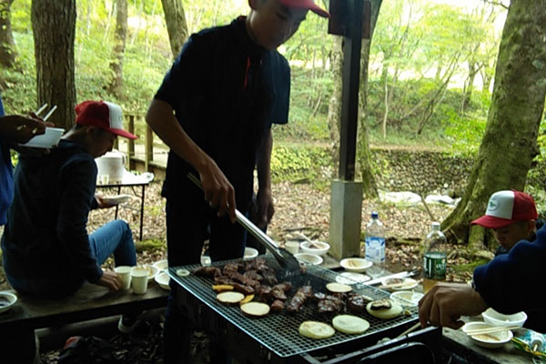 到着後、みんなで協力してBBQの準備をしました。
