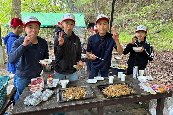 沢山の肉やフランクフルト、先生方が作ってくださった焼きそば、