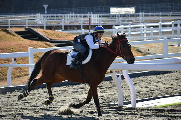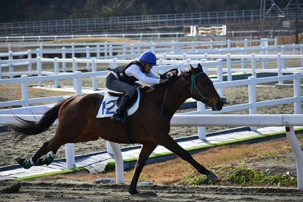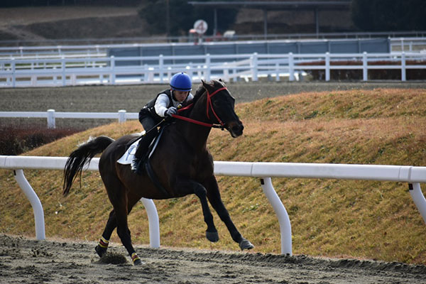 今回の追い込みでは、手綱を詰めかえて鞭を打ち、しっかりと追ってくることが出来ました。また、馬を追う感覚や馬が伸びる感覚を知ることができました。次回の発走から追い込みの時には、手綱の詰めかえをもっとスムーズにして、上体をしっかりたたんで追えるようにしたいです。
