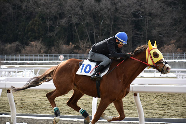 今回の発走から追い込みでは、直線での姿勢、手綱の詰め変えや鞭を拳の動きと合わせて打つことができ、トレーニングの成果を発揮することができました。ですが、走行位置やゲートから真っすぐ出ることなど、自分に必要なことをたくさん見つけることができました。次の発走から追い込みでは今回の反省を活かせるよう、訓練に励んでいきます。