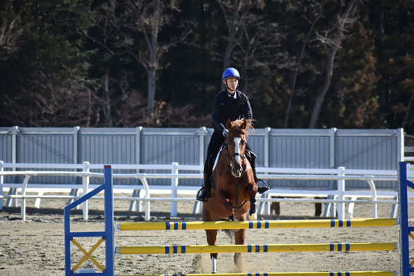今回は競馬学校での悔しい経験を活かし、悔いの残らないコース走行が出来るようにしっかりと準備をして騎乗することができました。障害を飛ぶ際に目線が下がってしまう癖があるので、特に意識して乗りました。