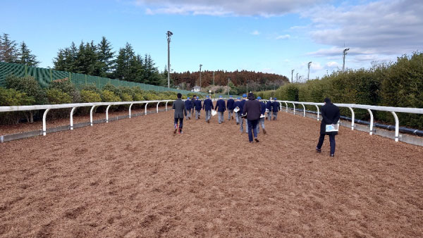 2日目は、最初にJRAの美浦トレーニングセンターを見学させていただきました。JRAの調教風景や設備の見学、坂路コースを歩かせていただくなど良い経験が出来ました。特に馬場の広さや馬の多さに衝撃を受けました。