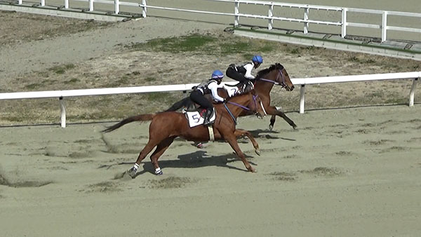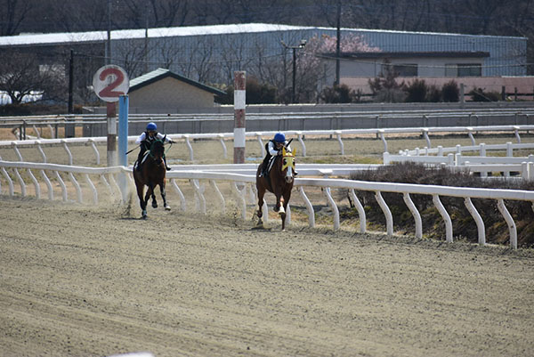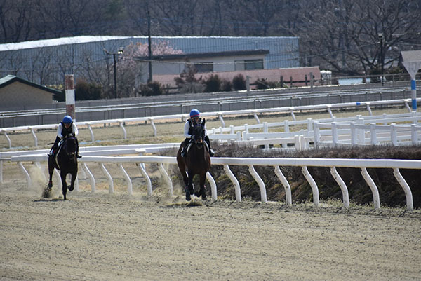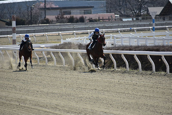 今回は、ゲートを出る時に前回よりもハミに当たることなく出ることが出来ました。しかし、併走馬との距離が開いたことで気持ちが焦ってしまい、手綱のつめかえや鞭を打つのが早くなってしまいました。追い込み操作でリズムよく追い込むことが出来るようになったので、姿勢をかっこよく決めて追い込めるように日々の訓練を頑張っていきます。