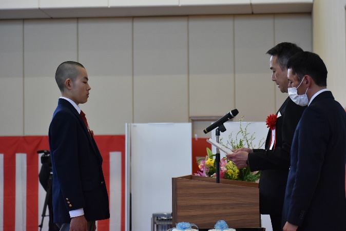 松浦所長より加藤、城野の2名に皆勤賞が授与されました。