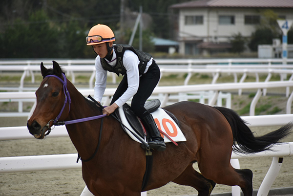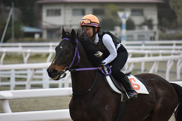 1年間の成果を十分に発揮することが出来ました。返し馬はいつもと違う環境に戸惑う馬を力ませないようにリラックスさせて行うことができ、レースではゲートや折り合い、併走がスムーズにできました。しかし追い込み操作では下半身の安定性に欠けていたと思います。馬を推せる迫力のある追い込み操作ができるように改善していきたいと思います。