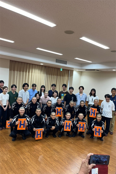 また、法政大学の皆さまからタオルを頂き、一緒に記念撮影をしました!楽しく終わることができ、将来に向けてとても良い話が出来ました!