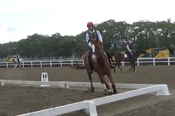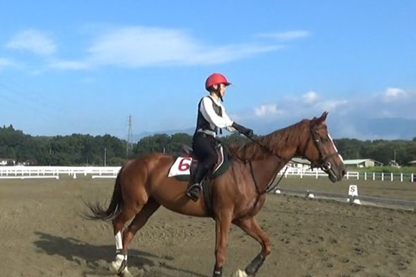 今回の技能審査では、正反撞の際に拳が上下しないことと、脚の位置が前後しないことを意識して乗りました。しかし、手綱が伸びて脚の扶助が雑になってしまいました。今後、よりいっそう丁寧な騎乗が出来るようにしていきたいです。