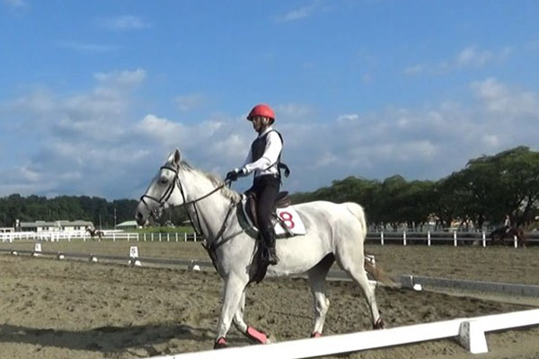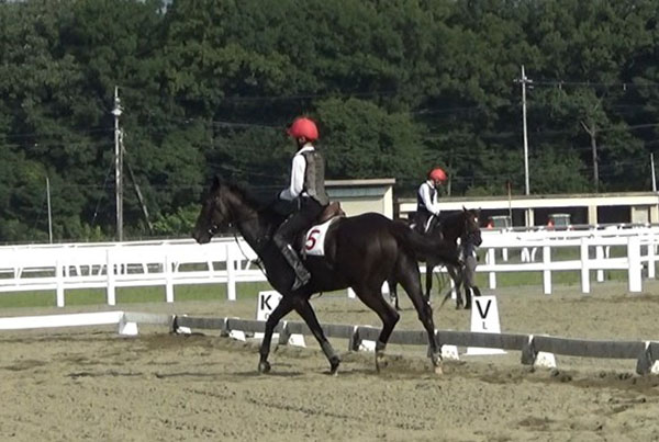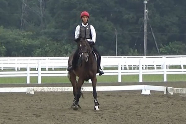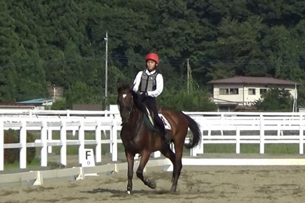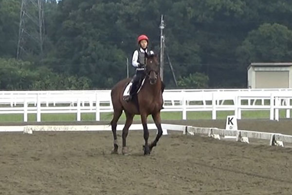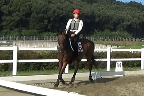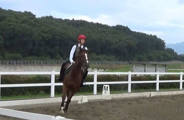 今回の技能審査では、中間歩度と尋常歩度のメリハリをつけることを意識して乗りました。しかし、扶助が雑になってしまい、歩法にイレギュラーがおきてしまいました。今後は的確な扶助操作を身につけて、馬に分かりやすく扶助を心掛けるようにします。