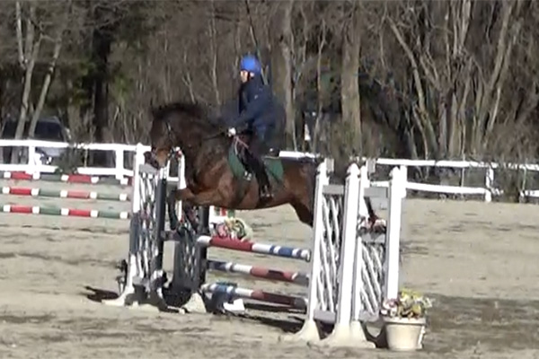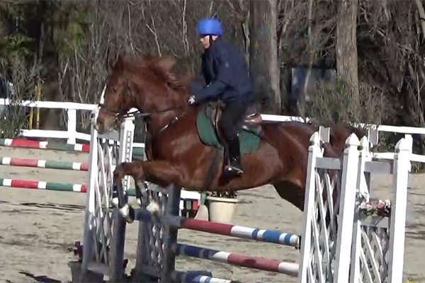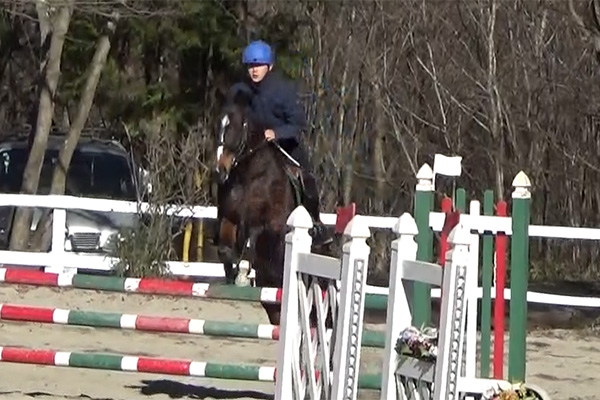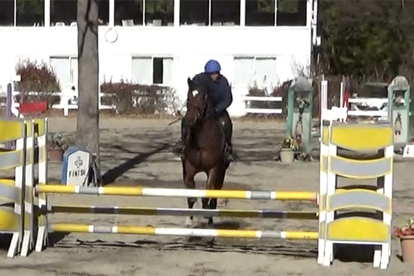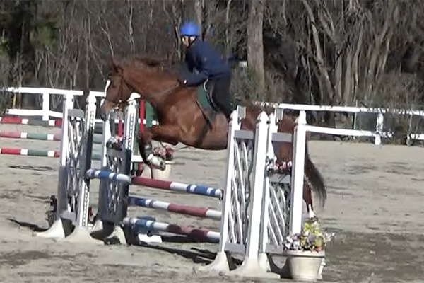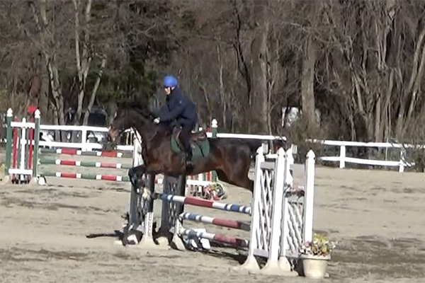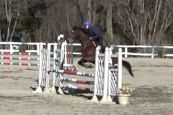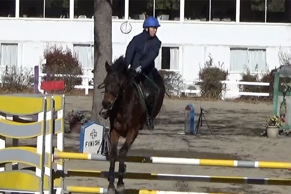 初めての競技会でしたが、いつもの練習の成果を発揮することができました。しかし、障害へのアプローチが雑になってしまい、内に入られてしまい、内方姿勢をしっかりとることができなかったので、今後の訓練で丁寧なアプローチができるように焦らずに乗ることを心掛けていきたいです。