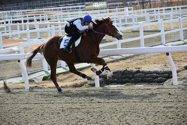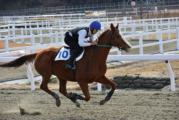 今回、発走から追い込みを行い、発進時は、馬の動きについていけず引っ張ってしまい、手綱にぶら下がって馬の邪魔をしてしまいました。道中の姿勢が高く、直線に入ってからはお尻が高くなってしまい、腰高な姿勢での追い込み操作になってしまいました。今後は木馬などで姿勢矯正をメインに取り組んでいきたいです。