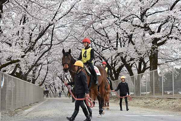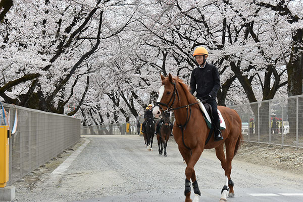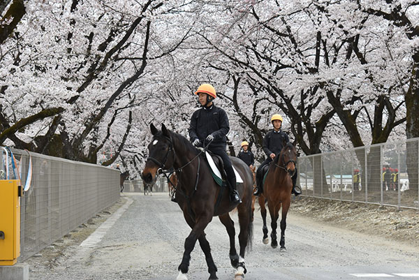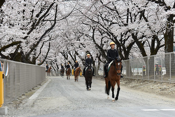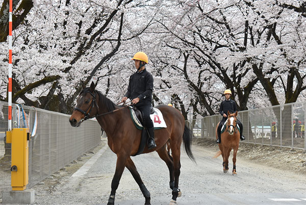 昨年入所した107期生は競馬場実習へ向けて毎日訓練に励んでおり、新入生の108期生も本格的な訓練が始まっています!この日は満開の桜の下で騎乗しました。