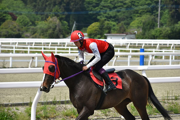 今回の競走実習は初めての右回りで、ゲートから発進後よれてしまって真っすぐにでることができずに内ラチとの距離が常にあいてしまった。馬の姿勢もずっと内側にバランスが崩れてしまい、向こう正面でひっかかってしまって折り合いがつかなかった。直線では馬もバテてしまい追い込み操作で手ごたえを感じることができなかった。今後の課題として真っすぐ、バランスよく乗れるように木馬でのトレーニングを頑張りたい。