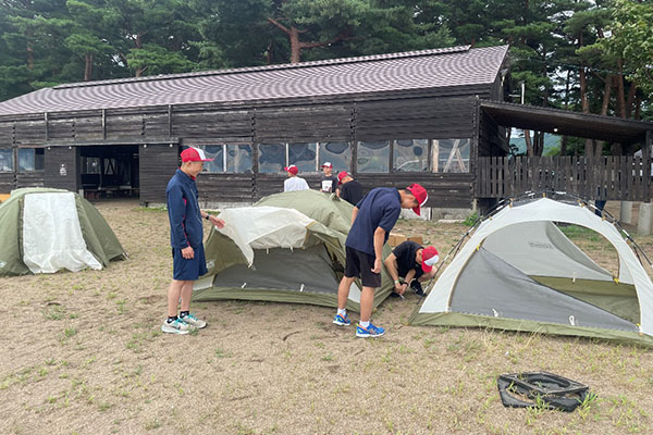 前日に教養センターでテントを張る練習をしたので苦戦せず張る事が出来ました。