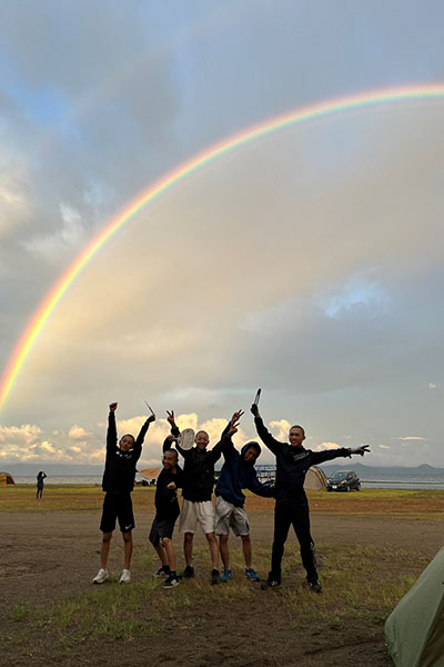 朝4時からBBQで使用した道具を洗っていると、綺麗な二重虹が架かっていました!