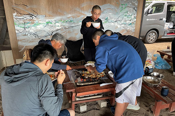 綺麗な虹を見た後は、朝ごはんにBBQで余った食材で焼きそばや焼き鳥を作りました。