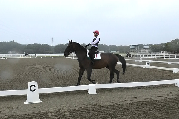 今回の技能審査では、歩度の詰め伸ばしや歩法の移行、標識を意識して、馬の動きとポイントの正確さにメリハリをつけて騎乗することを意識しました。しかし、停止から駈歩を出すときに扶助が雑になってしまい、上手く駈歩発進が出来ませんでした。今後は技能審査で見つけた課題を直して成長できるようにします。