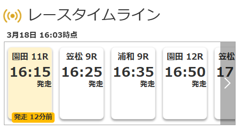 トップページにレースタイムラインを設置し、アクセス時点から実施される競走順に並んで表示されるようになります。